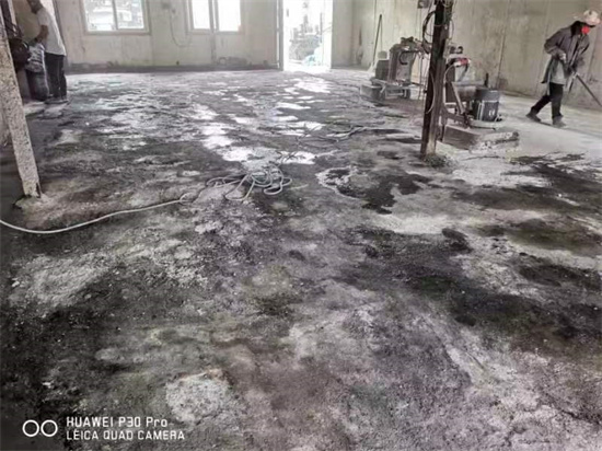 施工后把地面锆石砂浆粗磨掉后,却发现原水泥地面破损严重,强度很低,只有3到5厘米的厚度,大部分区域空鼓分层,只有底层的原路面强度可以,还是有破损。